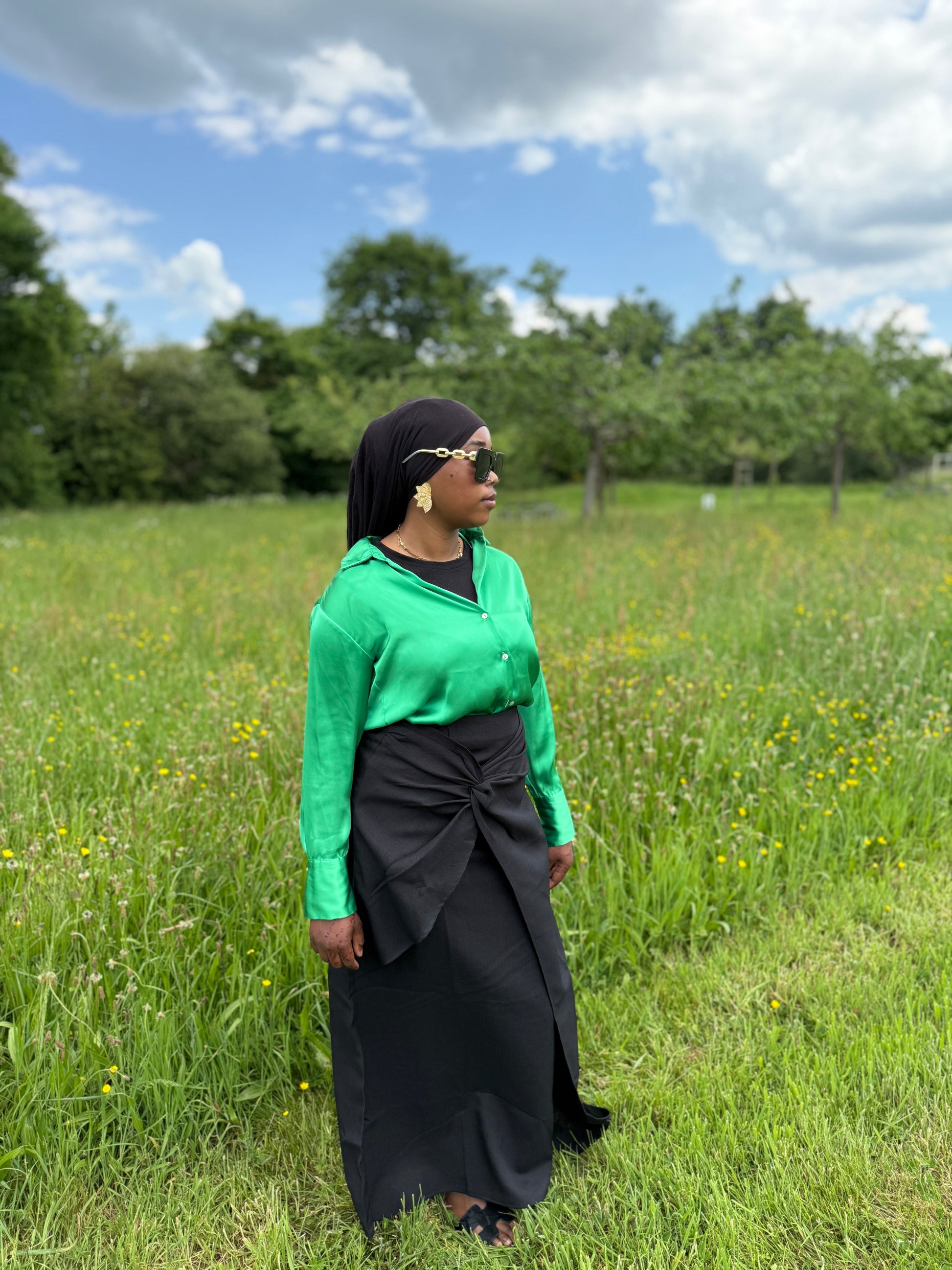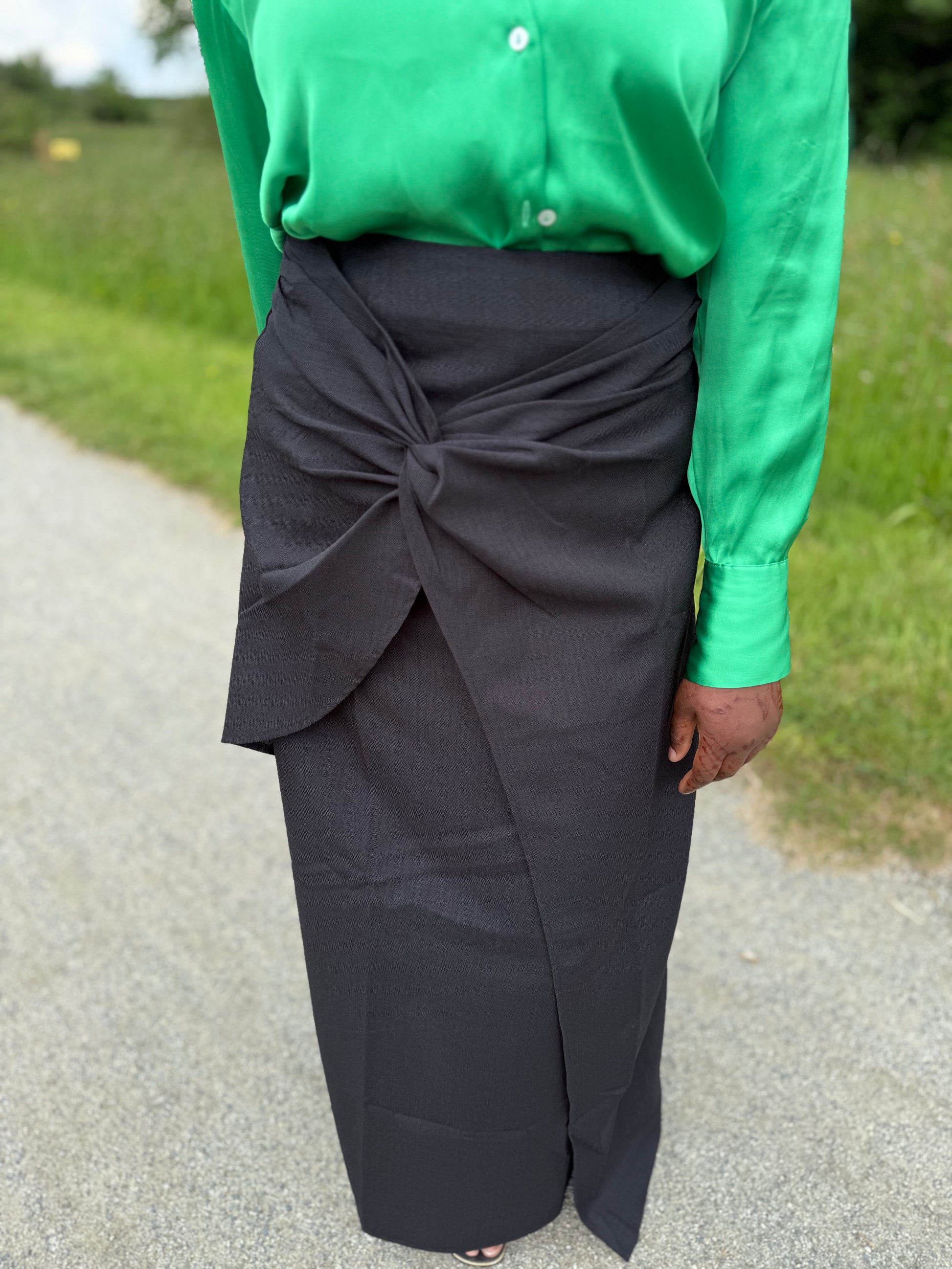 Jupe longue polyester avec nœud, parfaite pour la saison. Mannequin mesure 1m68 et porte du L.